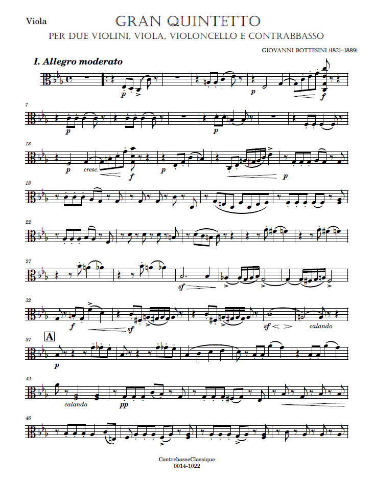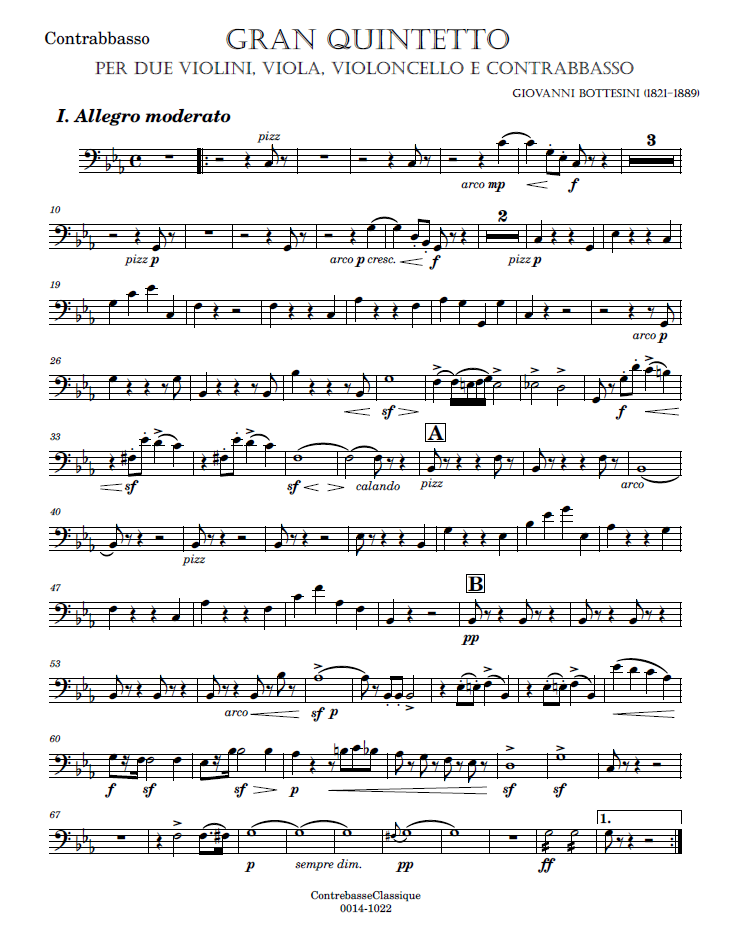 - Besonderheiten dieser Partitur: Einziges Streichquintett mit Kontrabass von Bottesini. Diese Partitur basiert auf der Ricordi-Fassung mit geringfügigen Änderungen.