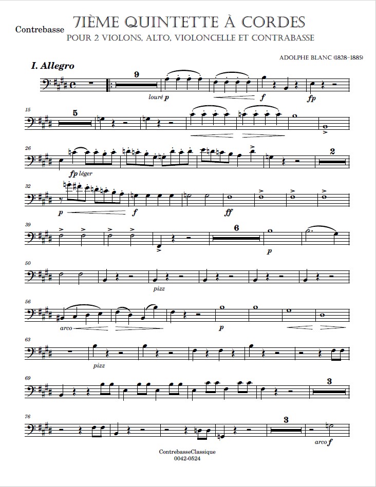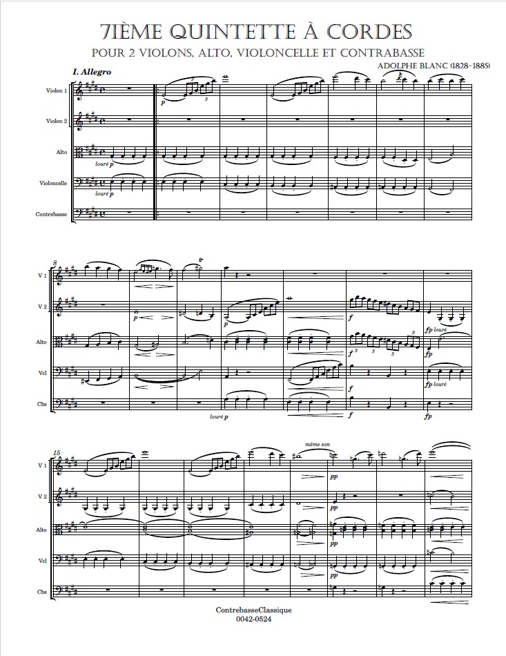 - Instrumentation : 2 violons, alto, violoncelle et contrebasse