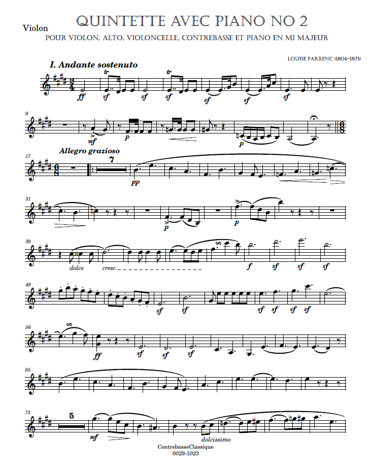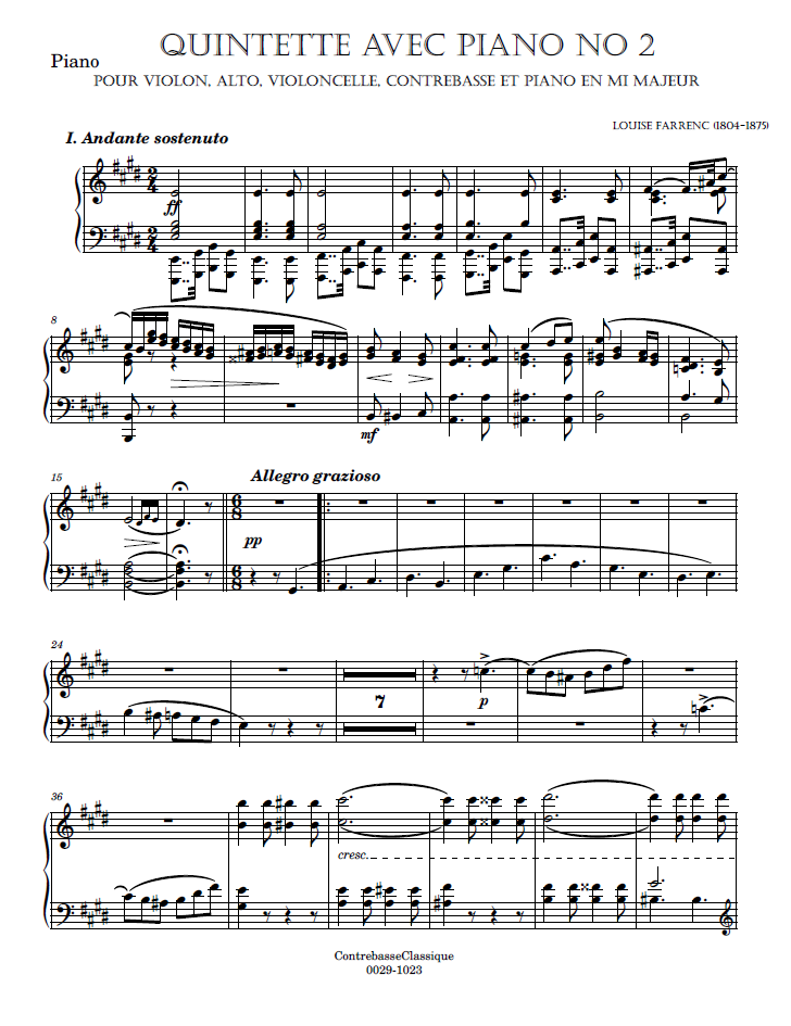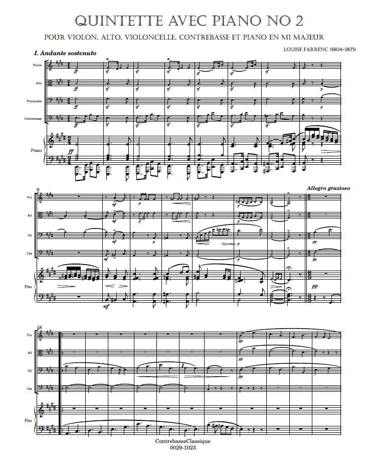 • Instrumentation : violon, alto, violoncelle, contrebasse et piano