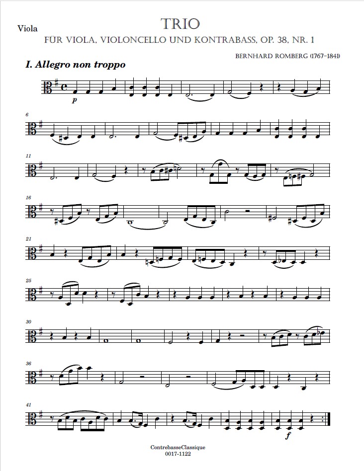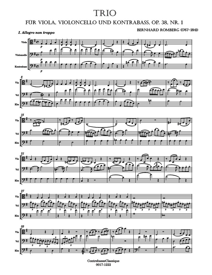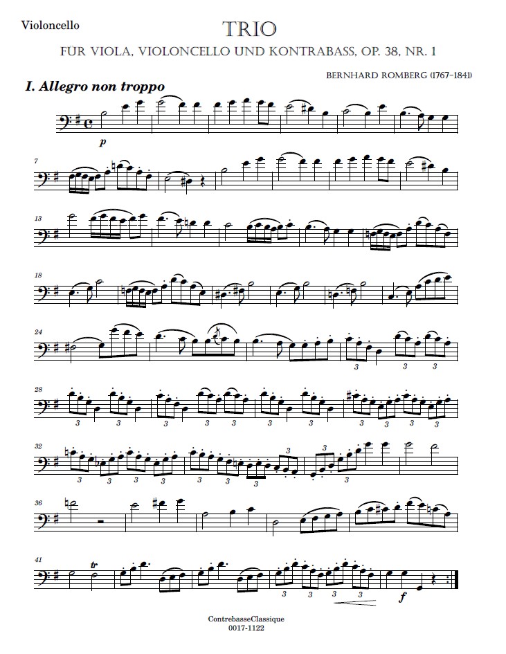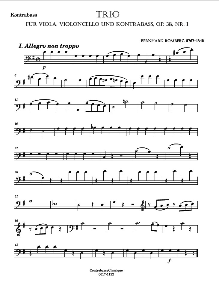 - Particularités de cette partition : Dans ce Trio, la partie solo est confiée au violoncelle. La partie de Basse a été adaptée à la contrebasse.