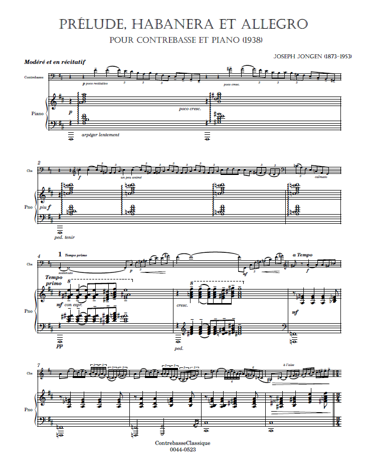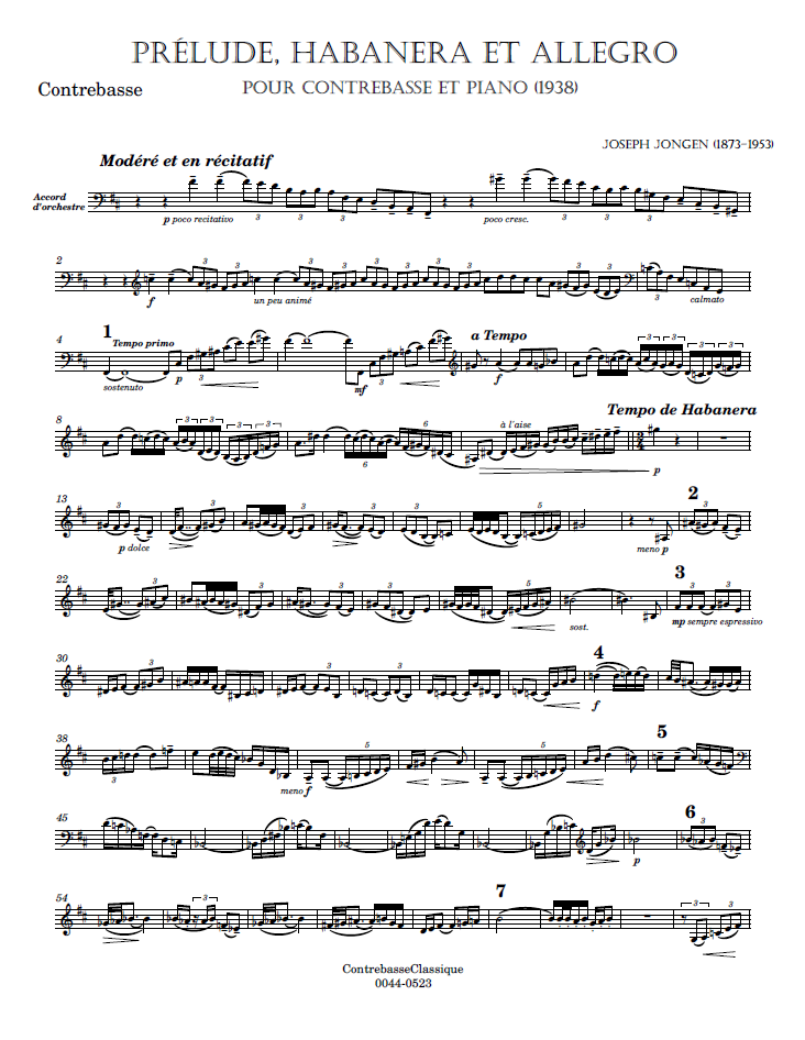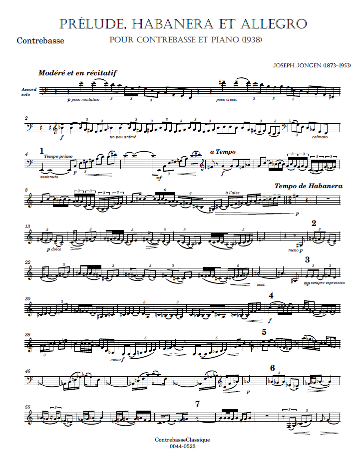- Special features of this score: Double bassists should make this sublime work their own, although it is not often played. Jongen is a somewhat forgotten composer today, unfortunately. Features two double bass parts, for orchestra tuning and solo tuning.