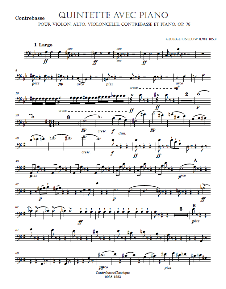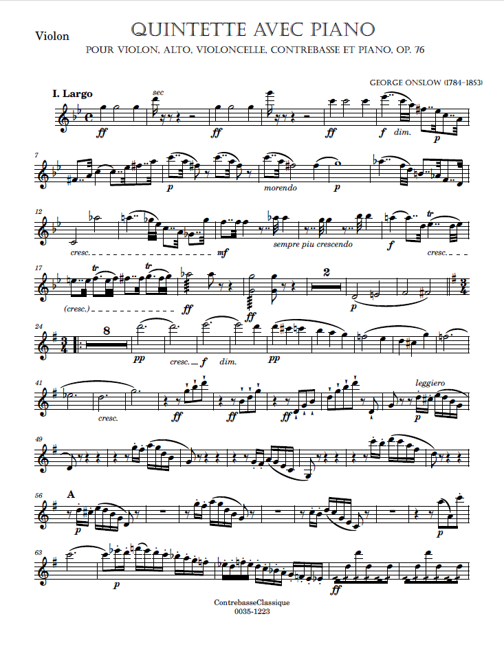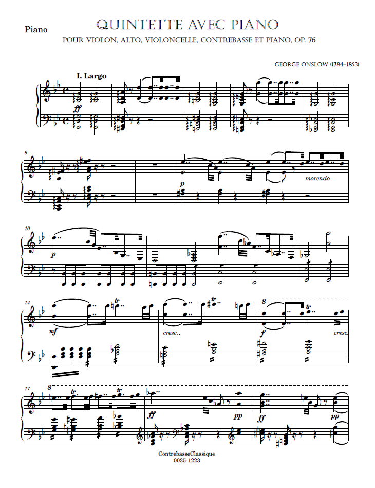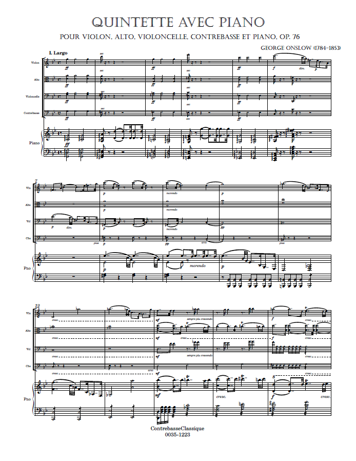 • Instrumentation: violin, viola, violoncello, double bass and piano