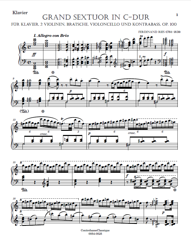 - Special features of this score: The piano writing of this Sextet is highly virtuosic. The string instruments maintain a supporting, accompanying function akin to an orchestral string section.